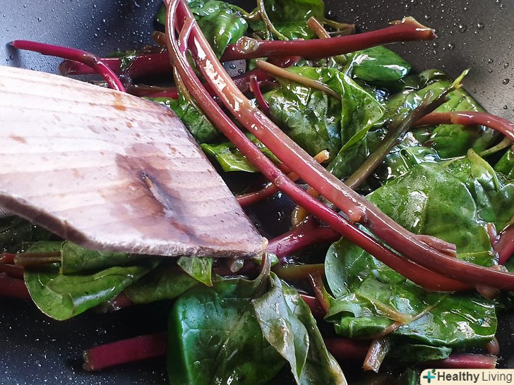 - Мангольд з червоними ребрами буде фарбувати інші продукти, які готуються з ним.