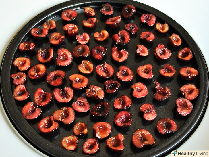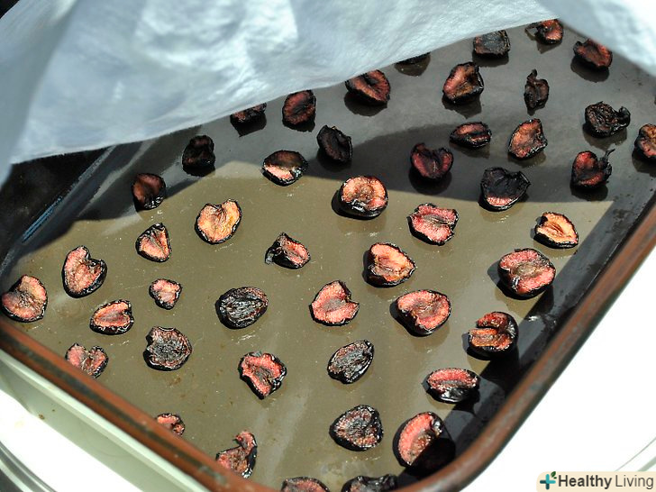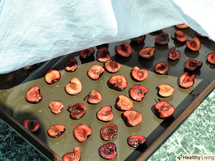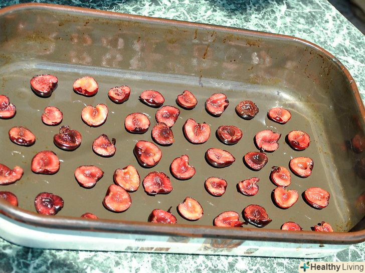 Залиште ягоди сушитися на сонці на 2-4 дні.швидкість сушіння залежить від температури і вологості, тому постарайтеся частіше перевіряти готовність вишні.