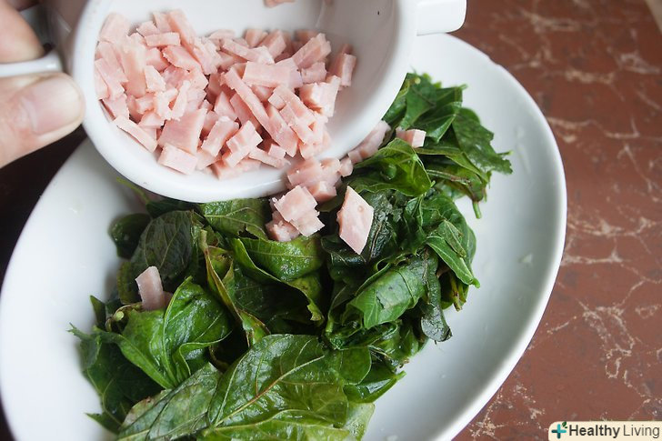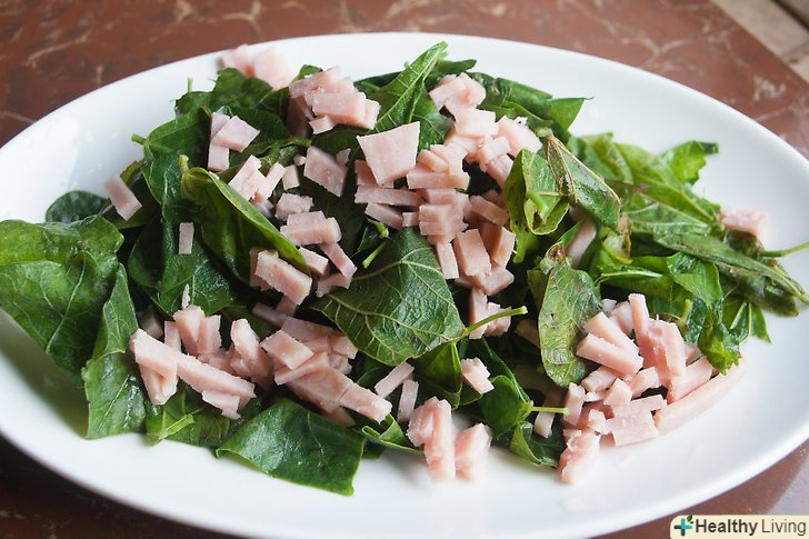 Додайте в бульйон бекон або шинку. [3] це традиційне блюдо в південному стилі. Бекон або шинка додаються в якості компенсації гіркоти зелені.- Використовуйте приблизно 1 склянку (250 мл) солоної свинини, шинки або бекону. Обсмажте м'ясо і перекладіть прямо з сковороди в зелень ріпи, як тільки вона почне готуватися.