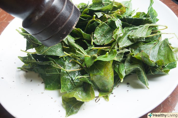 Розірвіть листя.подрібніть зелень руками.- Кожен шматочок повинен бути приблизно 1,27 см.