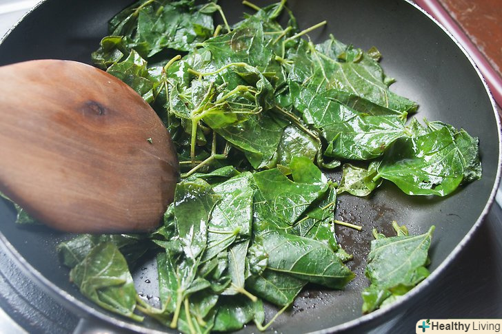 Приготуйте зелень ріпи на сковорідці.замість того, щоб готувати зелень в киплячій воді, обсмажте її в 1 ст.л. (15 мл) оливкової олії до м'якості.[4]- Це може зайняти від 5 до 15 хвилин, в залежності від того, якою мірою прожарювання зелень ви любите.