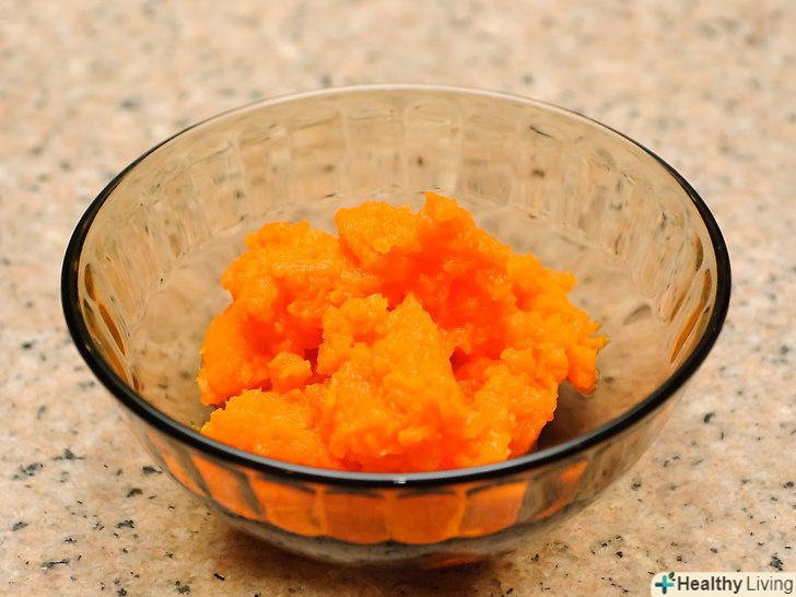 Покладіть 1 склянку (240 грам) м'яких овочів в подрібнювач.вам не треба очищати шкірку з овочів, якщо ви використовуєте цей метод. Ручний подрібнювач природним чином відокремить м'якоть від шкірки. Пізніше ви зможете викинути відокремлену шкірку і насіння.- Повертайте ручку за годинниковою стрілкою домінуючою рукою, тримайте миску подрібнювача не домінуючою рукою.пюре буде проходити через сито і збиратися в миску.