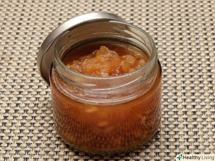 Спробуйте приготувати яблучний джем з імбиром.щоб смак імбиру не був занадто різким, вам потрібно взяти 340 грамів нарізаного кореня імбиру, додати 240 мл води і подрібнити до пюреобразного стану. Після цього процідіть отриману масу через марлю — у вас повинно вийти близько 2 чашок рідини. Перелийте цю рідину у велику каструлю, додайте туди 1,5 кг очищених яблук без серцевини (заздалегідь наріжте їх кубиками або натріть за допомогою терки). Додайте в каструлю 1 кілограм цукру, поставте на плиту і доведіть до кипіння. Залиште джем кипіти протягом 25-30 хвилин. У вас повинно вийти близько 2,5 кілограмів готового продукту. Якщо ви хочете, щоб джем зберігався довгий час, розкладіть його по банках і простерилизуйте.[6]- Якщо Ви користуєтеся кухонним термометром для визначення готовності джему, переконайтеся, що температура досягла 100-105 °с.