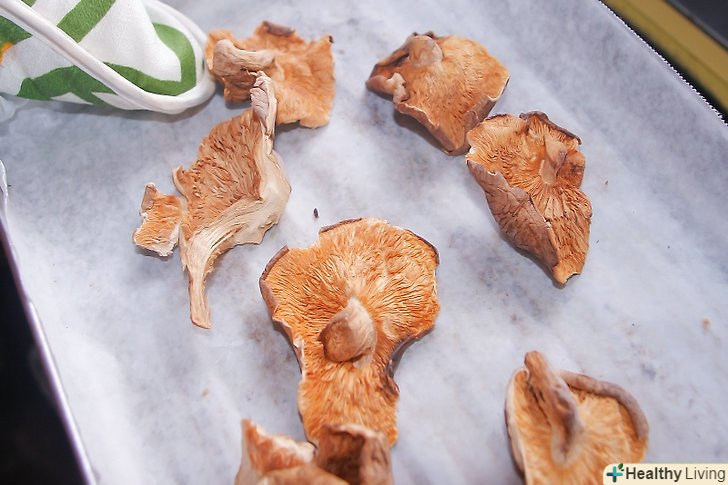Продовжуйте перевіряти гриби до тих пір, поки не вони не висохнуть.досить просушені гриби повинні ламатися як крекери або чіпси.[3]
