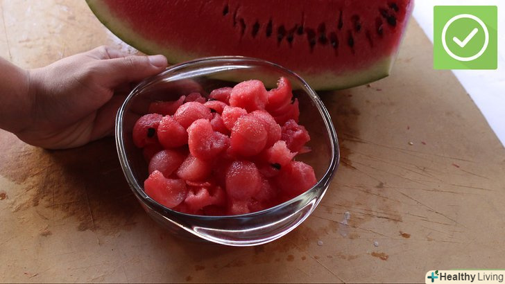 - Покладіть зрізані часточки кавуна в миску.