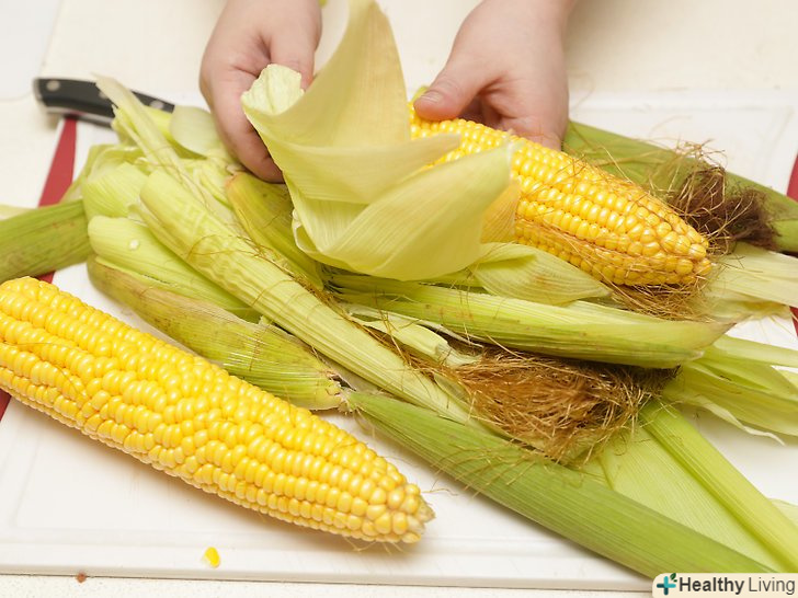 Підготуйте кукурудзу. очистіть качани від листя і видаліть волокна. Вимийте кукурудзу і при необхідності виріжте зіпсовані місця. При бажанні можна розрізати качани навпіл, щоб отримати менші порції.