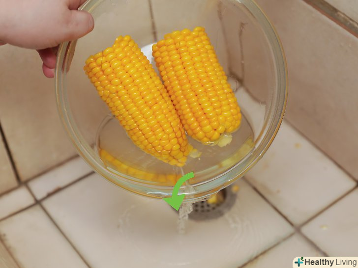Дістаньте кукурудзу з духовки і злийте воду.можна також перекласти кукурудзу за допомогою щипців з форми для запікання в блюдо сервіровки.