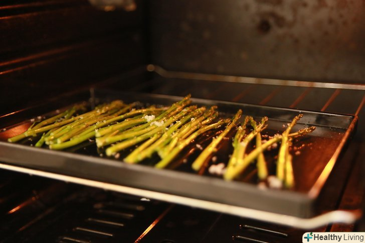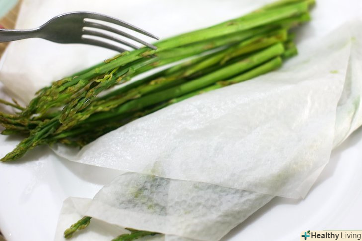 Підсмажте спаржу в духовці.під час смаження спаржі з'являється чудовий аромат, тому це і є одним з найпопулярніших способів її приготування. Вимийте і обріжте пагони, злегка очистіть верхній шар жорстких стебел і висушіть їх. Розкладіть пагони на деку і полийте оливковою олією, умочуючи в ньому кожен втечу. Посипте сіллю і свіжомеленим перцем і випікайте при температурі 220°C протягом 10-15 хвилин.- Можна змішати підсмажену спаржу з різотто або кремовою пастою. Також смажена спаржа може стати гарніром до м'яса, риби і пасти.