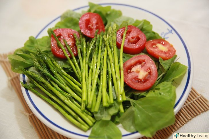 Вживайте спаржу в їжу в сирому вигляді.це може здаватися зовсім не смачним блюдом, але сира спаржа є швидким і легким способом отримати поживні речовини. Її можна їсти в якості закуски або додати в салат. Щоб подати разом з салатом, наріжте спаржу і подавайте в сирому вигляді з листям салату, шпинатом, помідорами і всім тим, що розбурхує вашу уяву. Подумайте про подачу з легким вінегретом.
