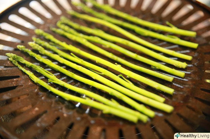 Приготуйте спаржу на відкритому повітрі на грилі.обріжте кінці спаржі, якщо пагони занадто товсті. Вимийте її. Виготовте" човен " для спаржі з алюмінієвої фольги, в якій будете її готувати; борти повинні бути досить високими, щоб масло і спаржа не вихлюпувалися. Налийте 1-2 столові ложки оливкової олії в" човен " з фольги і розкладіть спаржу зверху. Тримайте "човен" на грилі на середньому вогні до тих пір, поки пагони не придбають потрібну вам ступінь готовності.- Приготована на вогні спаржа стає жорсткіше, але як і раніше зберігає рідину. Кращим з якостей спаржі вважається те, що під час її приготування поживні речовини не зникають!