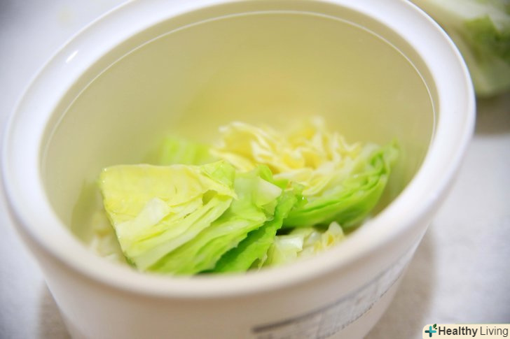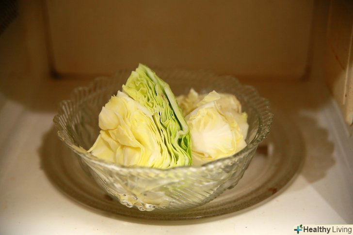 Помістіть четвертинки капусти в мікрохвильову піч і готуйте 9-11 хвилин.візьміть тарілку, придатну для використання в мікрохвильовій печі, і налийте в неї 2 столові ложки (30 мл) води. Додайте капусту і накрийте її поліетиленовою плівкою. Ножем або виделкою виконайте в плівці кілька отворів і готуйте на високій потужності 9-11 хвилин. Після цього обережно зніміть плівку і подайте капусту до столу.[11]- Переверніть або помішайте капусту, коли пройде половина часу.