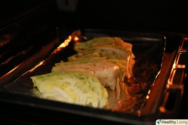 Використовуйте духовку, щоб приготувати стейки з капусти.для початку візьміть цілий качан капусти. Наріжте його на шматочки по 0,64 - 1,27 см.приправте їх з обох сторін оливковою олією, сіллю, часниковим порошком і орегано. Помістіть капусту в розігріту до 220 °C духовку і готуйте 10 хвилин. Переверніть капусту силіконовою лопаткою і готуйте ще 10 хвилин.[13]- Якщо вам не подобається часник, приправте капусту оливковою олією, чорним перцем, сумішшю трав і свіжим кропом.[14]