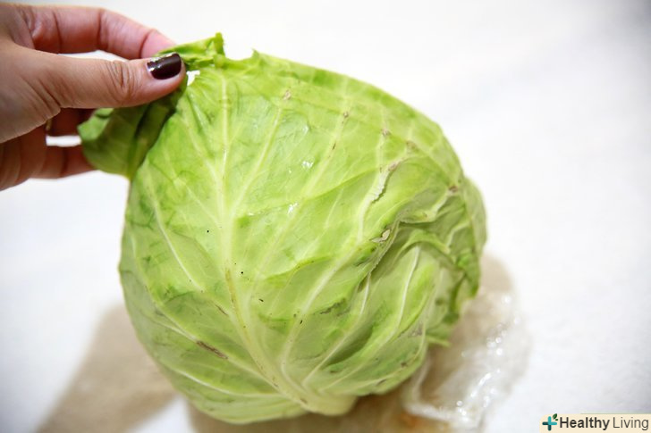 Зніміть тверді зовнішні листя і промийте капусту водою.коли прийде час, дістаньте капусту з холодильника і відокремте зовнішні листя, поки не побачите свіжі. Промийте капусту в холодній воді, а потім висушіть паперовими рушниками.[3]