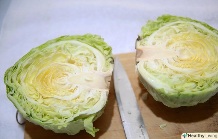 Купуйте капусту з твердими, яскравими і бездоганними листям.виберіть капусту, яка буде здаватися важче для свого розміру. Залежно від різновиду капусти, листя повинні бути яскраво-зеленими або фіолетовими і без коричневих плям. Не купуйте капусту з зів'ялими, м'якими або пошкодженими листям.[2]