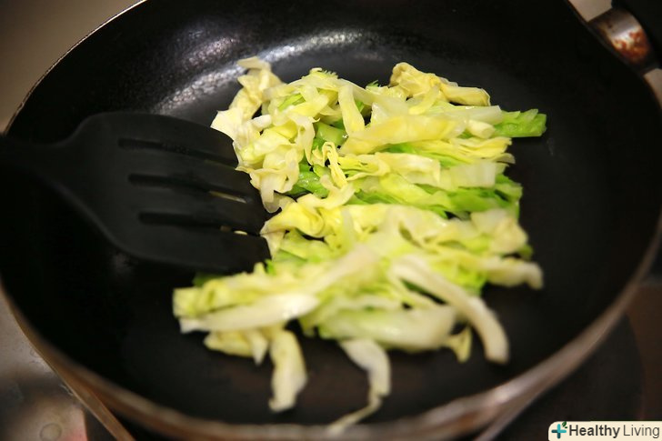 Обсмажуйте капусту на середньому вогні 4-6 хвилин.поставте сковороду на помірно середній вогонь і нагрійте 2-3 столові ложки (30-45 мл) рослинного масла. Зменшіть вогонь до середнього і додайте капусту. Пасеруйте капусту 5-6 хвилин, часто її помішуючи. Приправте капусту сіллю з перцем і подайте до столу.[10]