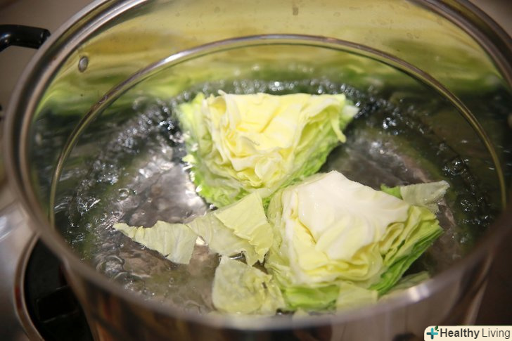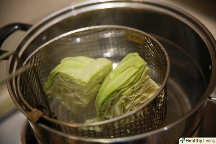 Варіть четвертинки 8-10 хвилин або поки вони не стануть м'якими.налийте у велику каструлю стільки води, щоб в неї можна було занурити капусту. Додайте пів чайної ложки (2,5 г) солі і доведіть воду до кипіння. Занурте капусту в воду і варіть її 2 хвилини без кришки, щоб вивільнити запах. Після цього накрийте каструлю і варіть, поки капуста не стане м'якою (ще приблизно 6-8 хвилин). Злийте воду з каструлі і подайте капусту з оливковою олією, сіллю і перцем.[7]- Якщо ви нарізали капусту на більш дрібні шматочки, тоді варіть її 3-5 хвилин.