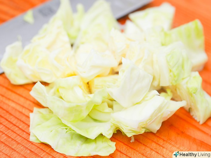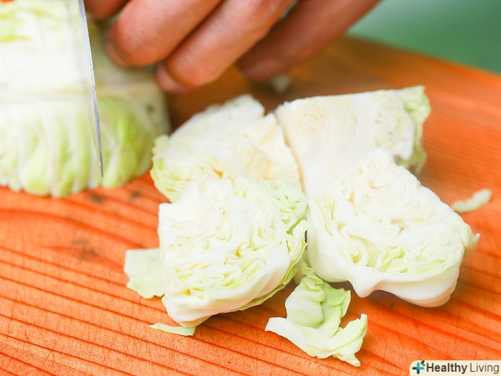 Вимийте і наріжте капусту.промийте капусту під прохолодною проточною водою і розріжте її на шматки по 7,5 см або на вісім частин.- Після того, як вимиєте капусту, очистіть зовнішні листя.