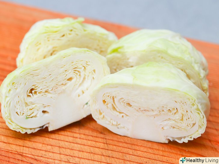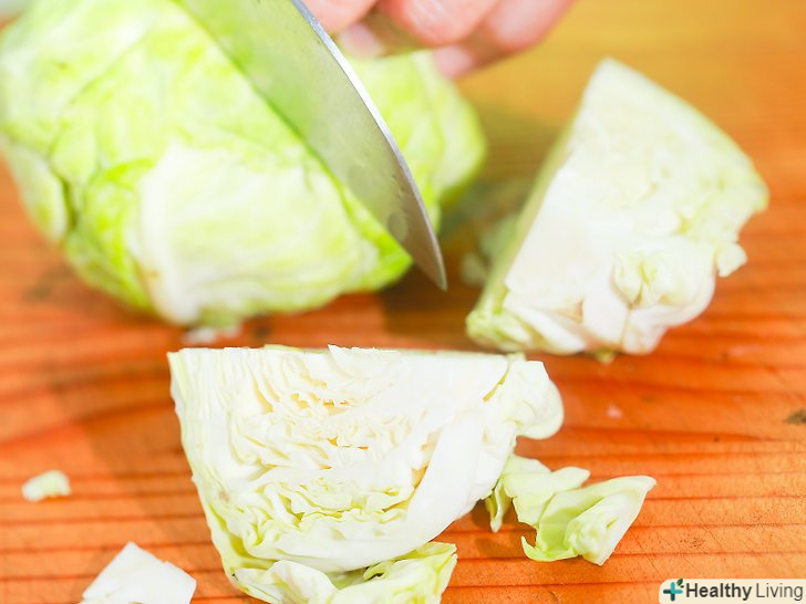 Розріжте капусту на часточки.розріжте капусту поздовжньо навпіл, а потім ще раз навпіл. У вас повинно вийти 4 частини.- Якщо серцевина не видалена, зробіть це, як тільки розріжете капусту.