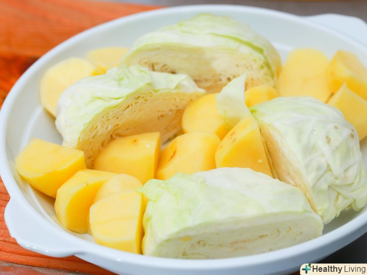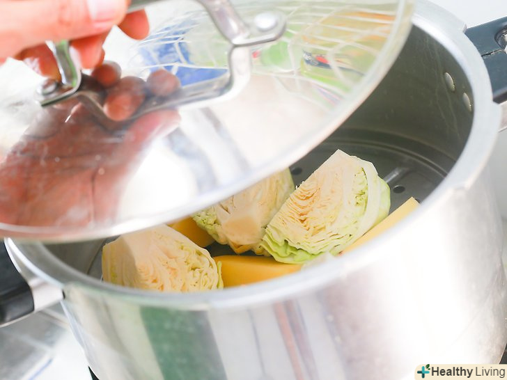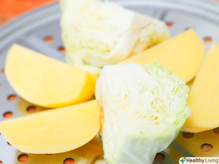 Помістіть капусту і картоплю в кошик для пароварки.картоплю необхідно покласти на дно, а капусту викласти зверху одним шаром.- Якщо у вас немає кошики для пароварки, використовуйте металевий друшляк.