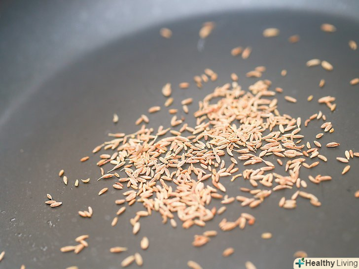 Тим часом в невеликій сковороді обсмажте насіння кмину.покрийте сковороду жиром для готування і додайте насіння кмину. Обсмажуйте, часто помішуючи, поки насіння не випустять аромат і не стануть більш яскравого кольору.- Це повинно зайняти 1-2 хвилини.