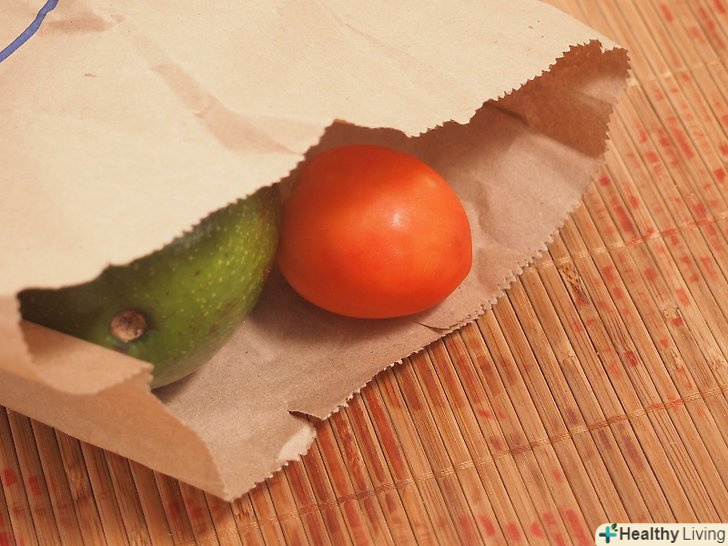 Покладіть в паперовий пакет банан, яблуко або помідор.банан підійде найкраще, але згодяться і інші фрукти. Деякі вважають за краще використовувати яблуко, тому що його можна використовувати знову і знову — навіть зморщене яблуко як і раніше виділяє газ.[2] якщо у вас нічого цього немає, але є ще один авокадо, покладіть в пакет його.- Ці фрукти виділяють більшу кількість етилену, ніж інші. Чим більше газу, тим швидше дозріє авокадо.[3]