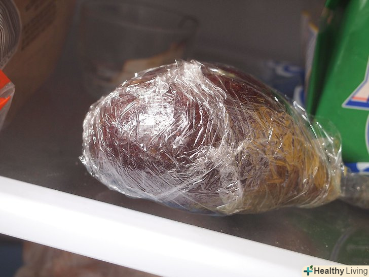 Накрийте його прозорою поліетиленовою плівкою.складіть половинки разом і оберніть плівкою, щоб авокадо виглядав цілим. Покладіть його в холодильник.- Якщо у вас немає поліетиленової плівки, використовуйте щільно закривається контейнер.
