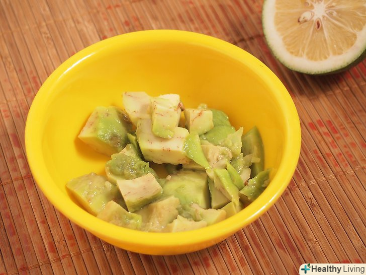 Збризніть нарізаний авокадо соком лимона або лайма.оскільки фрукт нарізаний, необхідно запобігти його потемніння і розм'якшення за допомогою кислотного агента, такого як лимонний сік.[7] Ваша мета-зробити так, щоб авокадо дозрів, а не зіпсувався.