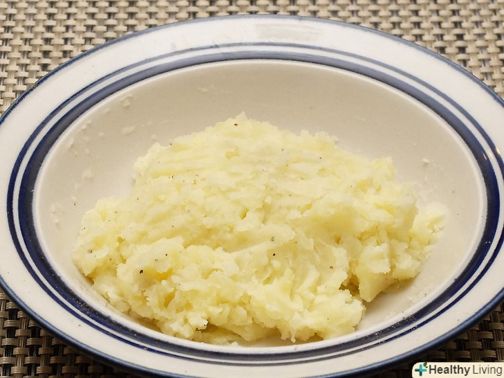 Розімніть картоплю в пюре.покладіть очищену картоплю в миску і додайте туди ж 1/2 склянки (120 мл) молока, 1/2 склянки (120 мл) вершків (їх можна замінити сметаною або несолодким йогуртом) і 1 столову ложку вершкового масла. За допомогою картоплем'ялки або великої вилки розімніть картоплю до отримання однорідного пюре. Додайте сіль і перець за смаком.[13]
