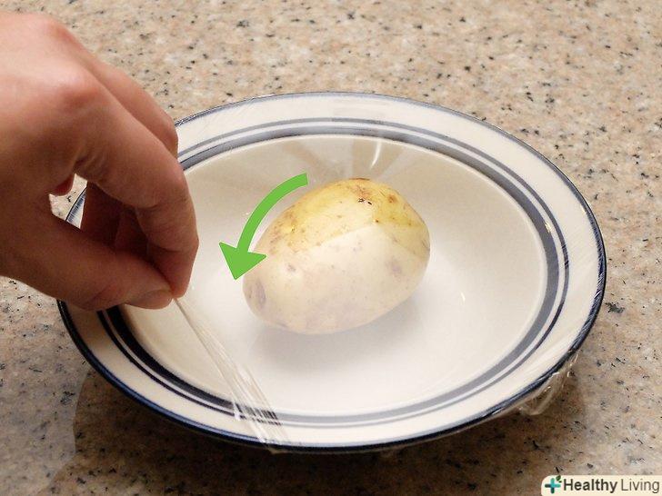 Накрийте і готуйте.накрийте посуд харчовою плівкою, залишивши один край відкритим. Поставте в мікрохвильову піч і готуйте на максимальному режимі протягом 5 хвилин. Дістаньте посуд з печі, відкрийте плівку і перевірте, чи готовий ваш картопля. Якщо Бульба все ще твердий, поверніть його назад, включіть мікрохвильовку ще на одну хвилину , після чого знову перевірте готовність картоплі.[11]