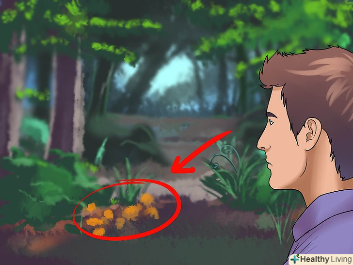 Уважно стежте за помаранчевими трісками, що визирають із землі.чи можете ви знайти лисички на цій картинці? Якщо ви знайшли одну лисичку, ймовірно, поблизу є і більше. Огляньте область навколо найближчого дерева. Подивіться на землю з різних кутів. Пересувайтеся акуратно, щоб не розчавити лисички.
