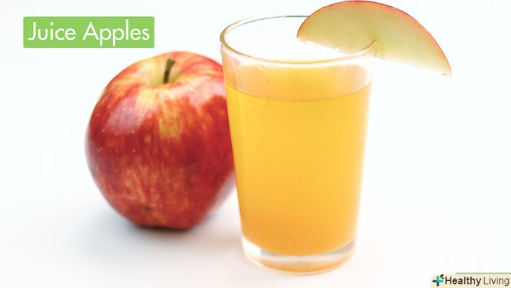 Зробіть яблучний сік.Подумайте, який з інгредієнтів різних соків користується найбільшою популярністю? Мабуть, це яблучний сік. Це пояснюється його солодкістю, прекрасним смаком і тим, що він добре поєднується з багатьма іншими соками. Якщо у вас є соковижималка, наріжте свіжі яблука скибочками і вичавіть з них сік, щоб змішувати його з іншими соками або пити сам по собі і отримувати безліч вітамінів.- Ще одним прекрасним напоєм, який можна приготувати самому, є яблучний сидр, причому його готують трохи по-іншому, ніж сік. Щоб зробити сидр, приготуйте зі шматочків яблука пюре, а потім процідіть м'якоть через марлю. Зберігайте вийшов сік в холодильнику.[15]