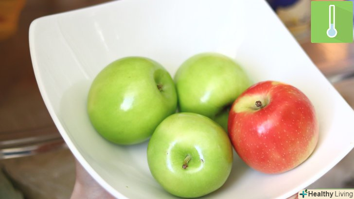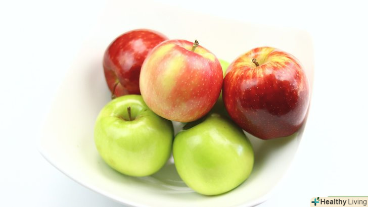 Вибирайте стиглі яблука.при покупці перевіряйте, щоб яблука були твердими на дотик і ароматними. Стиглий плід повинен бути твердим і пахнути яблуком у стебла і на протилежному кінці. Яблука деяких сортів, наприклад "Макінтош» і "джонатан", можуть бути трохи м'якими на дотик, так як мають податливу м'якоть. Це цілком нормально. Якщо плід пахне стиглим яблуком, він годиться в їжу.[3]- Зверніть увагу на ознаки ударів, зміни кольору і присутності черв'яків. Уникайте яблук з коричневими м'якими плямами або темними отворами в шкірці і м'якоті. Проте яблука з невеликими темними плямами на поверхні шкірки цілком годяться в їжу.