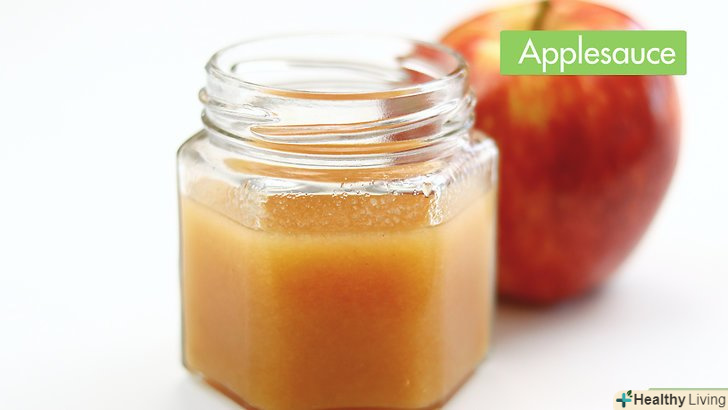 Приготуйте яблучне пюре .якщо ви придбали занадто багато яблук і боїтеся, що вони зіпсуються, перш ніж ви встигнете з'їсти їх сирими, можна приготувати з них власне яблучне пюре. В цьому випадку ви зможете зробити пюре відповідно до свого смаку. Можна залишити шкірку на яблуках,щоб зберегти харчові волокна, або видалити її, якщо ви віддаєте перевагу більш однорідне і ніжне яблучне пюре.[12]- Спочатку помийте сирі яблука і розріжте їх на досить дрібні шматочки. Візьміть середню каструлю, покладіть в неї яблука, поставте на середній вогонь і додайте трохи води, щоб вони не підгоріли. Періодично помішуйте пюре і готуйте його до тих пір, поки воно не придбає потрібну консистенцію. При бажанні додайте коричневий цукор і корицю на свій смак.[13]