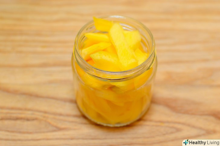 Покладіть нарізані манго в банку.покладіть шматочки манго в банку і якомога щільніше закрийте її.