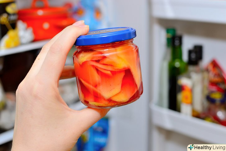 Полийте манго соком.вийміть сік з холодильника і вилийте його в банку, поверх шматочків манго. Заповніть банку доверху і переконайтеся, що щільно закрили її.
