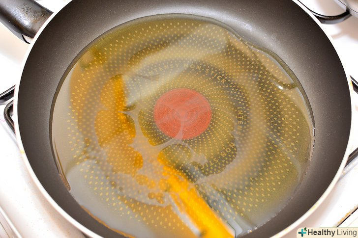 Розігрійте масло в сковороді, поки воно не задимиться.розігрійте в сковороді 1 ½ склянки гірчичного масла, поки воно не зашипить — це займе 1-2 хвилини. Якщо у вас немає гірчичного масла, замість нього можете використовувати звичайне масло і 2 ч.л. насіння гірчиці, змішавши їх разом. Зніміть сковороду з плити і охолодіть вміст.