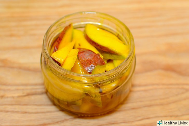 - Час від часу струшуйте банку, щоб змішати з маслом шматочки манго.