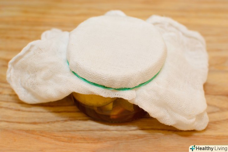 Зав'яжіть марлю поверх горлечка.щоб закріпити тканину, можете використовувати гумку.