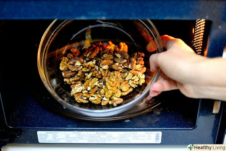 Покладіть горіхи в скляну миску, спеціально призначену для мікрохвильової печі.Блюдо для мікрохвильової печі добре підходить, але можна використовувати будь-яку іншу миску, яка позначена як безпечна для мікрохвильової печі. Тільки додайте достатньо волоських горіхів, щоб покрити дно страви в один шар. Щоб горіхи краще присмажилися, використовуйте половинки або четвертинки.