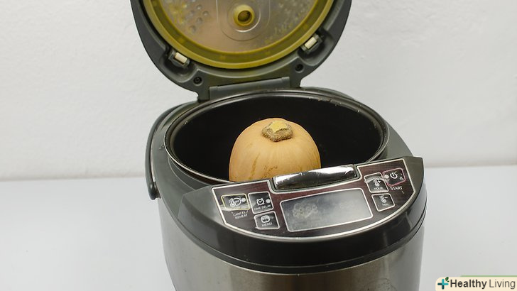 Запікайте цілий гарбуз в мультиварці 3-4 години, якщо хочете спростити собі роботу.покладіть гарбуз на обробну дошку і обережно зробіть кілька надрізів по 1,3 см.помістіть весь гарбуз в мультиварку і накрийте кришкою. Готуйте на високій потужності 3-4 години або 6-8 годин на низькій. Коли гарбуз стане м'якою і досить охолоне, щоб її можна було взяти в руки, розріжте її уздовж навпіл і видаліть насіння.[10]Інший спосіб: якщо ви хочете приготувати гарбуз в скороварці, помістіть кошик В пристрій і налийте в неї 1 стакан (240 мл) води. Покладіть гарбуз у кошик і закрийте кришку. Готуйте гарбуз 20 хвилин. Скористайтеся функцією швидкого скидання тиску і розріжте гарбуз, коли вона досить охолоне.