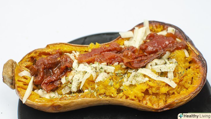 Полийте волокна соусом або приправте їх спеціями, перш ніж подати на стіл.перекладіть волокна гарбуза в сервірувальну миску і полийте їх своїм улюбленим соусом або каррі. При бажанні додайте тертий сир, свіжі трави і трохи оливкової олії.[8]- Спробуйте гарбуз-спагетті здомашнім томатним соусом, вершковим соусом альфредо Або арахісовим соусом.