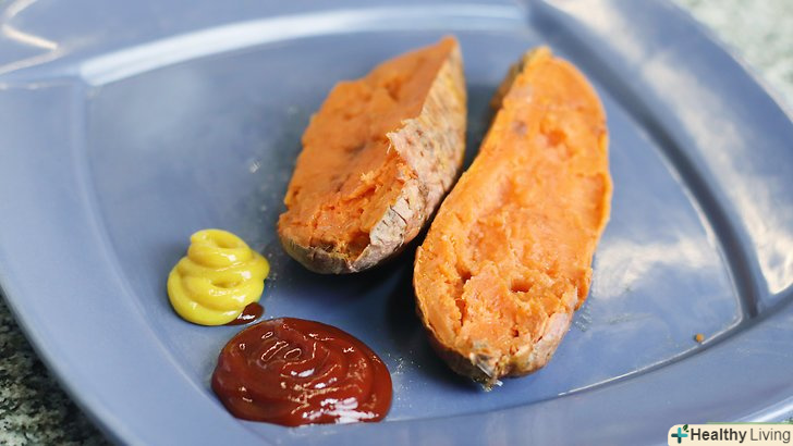 - Можна також приправити солодку картоплю тим, що Вам подобається, наприклад гірчицею, кетчупом або соусом для стейка.