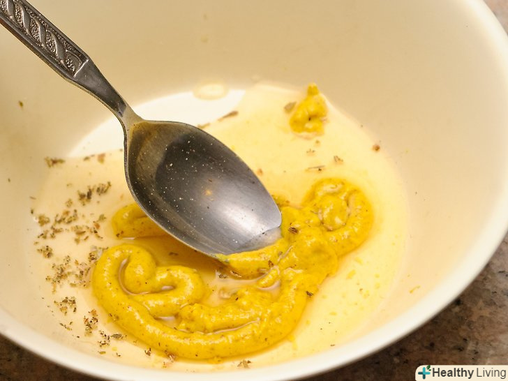 Зробіть заправку.у великій мисці змішайте лимонний сік, гірчицю і сушений розмарин. Посоліть і поперчіть за смаком.- Коли все добре перемішати, додайте оливкову олію і знову розмішайте.