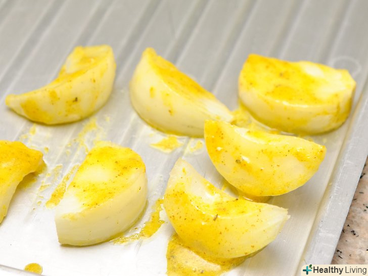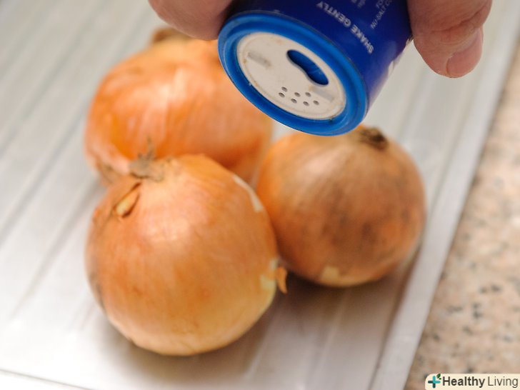 Налийте масло в форму для випічки і покладіть туди неочищену цибулю.- Можна просто покласти цибулю в форму для випічки, не наливаючи туди масло. Можете трохи посолити цибулю (за бажанням).