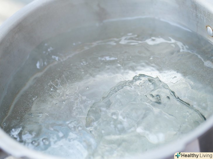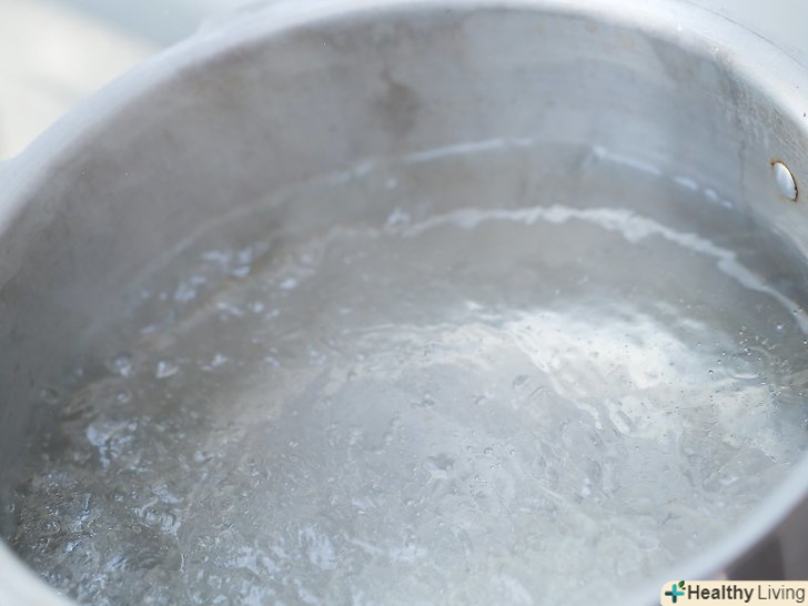 Приготуйте велику каструлю з водою для кип'ятіння.у каструлі повинно бути набрано води достатньо для того, щоб, коли банки встануть в каструлю, рівень води став на 2,5 см вище країв банок. Покладіть на дно каструлі ганчірку, щоб банки, які ви туди поставите, не цокалися об дно каструлі.- Якщо у вас є автоклав, використовуйте його. Доведіть воду в автоклаві до кипіння. Переконайтеся, що рівень води буде на 1-2 см нижче банок, коли ви їх туди поставите.