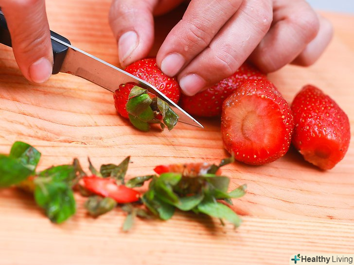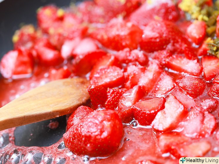 Помийте ягоди.після того як ви вибрали ягоди, які збираєтеся використовувати – або самі назбирали, або купили в магазині – покладіть їх в друшляк і сполосніть холодною водою, помішуючи ягоди і перевіряючи, щоб кожна була чистою. Ви ж не хочете, щоб в варення з ягодами потрапили якісь бактерії.- Ви також можете використовувати заморожену полуницю, якщо у вас немає можливості купити свіжу.
