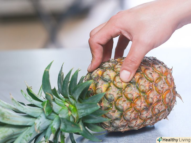Понюхайте ананас, щоб зрозуміти, наскільки він стиглий.більшість ознак стиглості, властивих фруктам, не відносяться до ананасів. Замість цього найкраще буде понюхати підставу ананаса. Сильний і приємний аромат означає, що ананас стиглий. Якщо ви нічого не відчуваєте, то, швидше за все, ананас нестиглий.[1] у прохолоді ананаси ніколи не дають сильний аромат, так що залиште ананас на якийсь час при кімнатній температурі.- Найкраще вибирати ананаси з жовтою шкіркою, а не зеленої, втім, це не завжди гарантує вибір кращого фрукта. Деякі ананаси доспевают краще тоді, коли вони повністю зелені.[2] при цьому ананаси з золотистою або червоною шкіркою можуть залишатися твердими і неприємними на смак.
