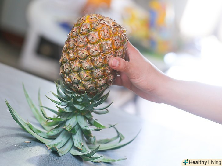 - Якщо вам складно поставити ананас догори ногами, то відкрутіть зелену верхівку і поставте відламаним кінцем на паперову серветку.[7]