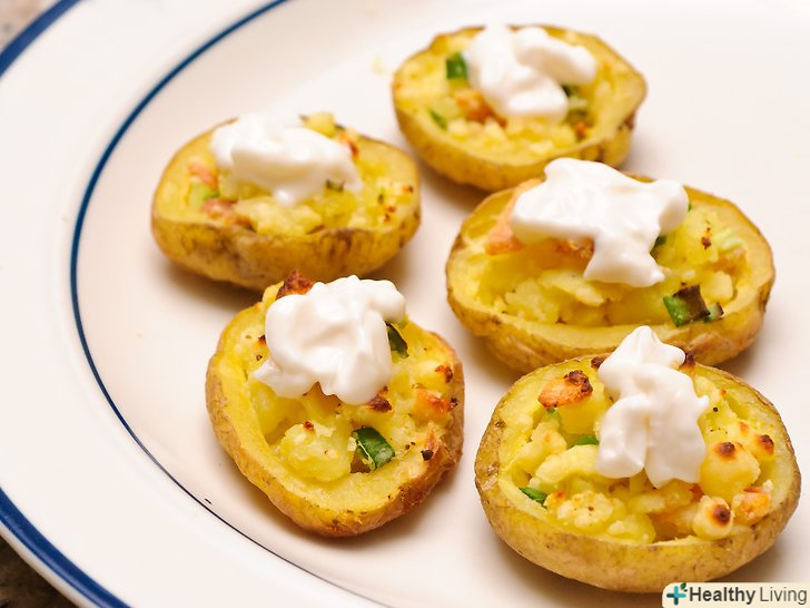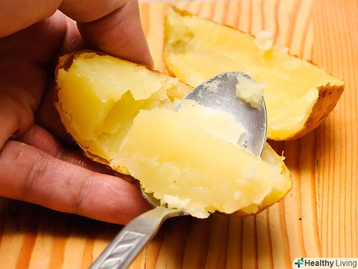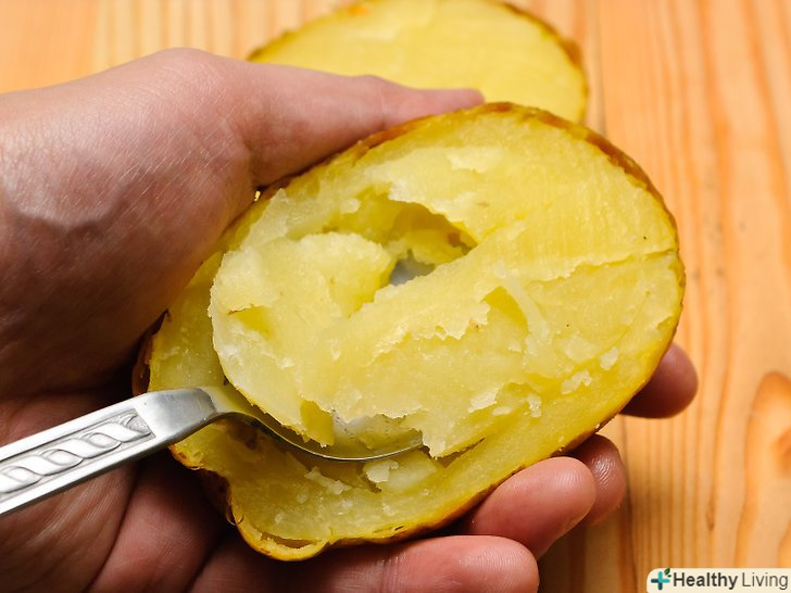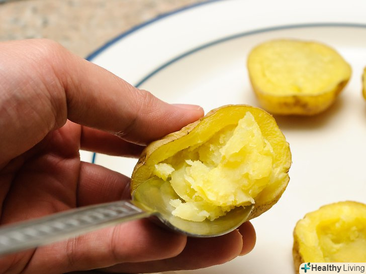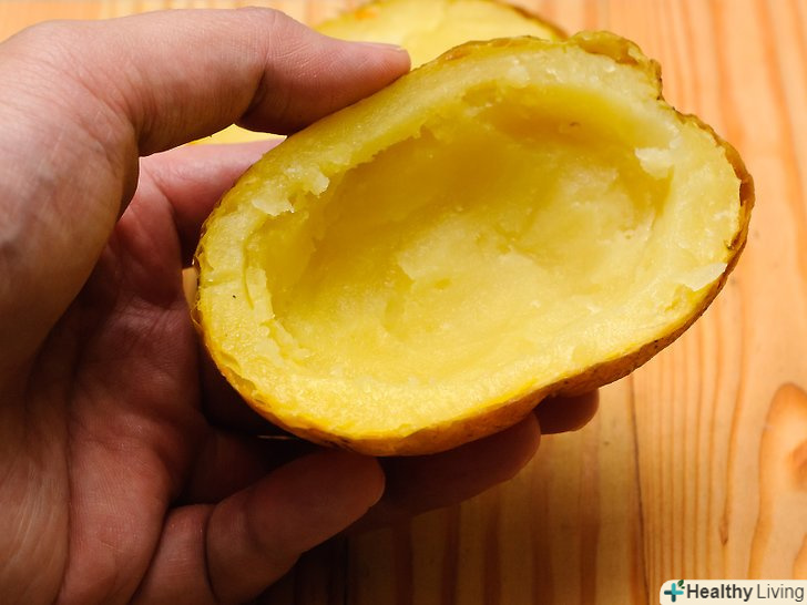 Дістаньте внутрішню частину картоплі.використовуйте ложку, щоб зробити це, залишивши тільки шкірку і тонкий шар картоплі. Якщо ви дістанете занадто багато картоплі, ви можете розірвати його шкірку, що створить подальші труднощі при приготуванні.