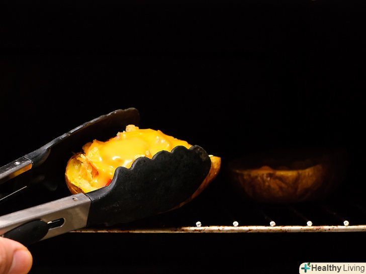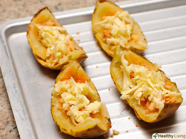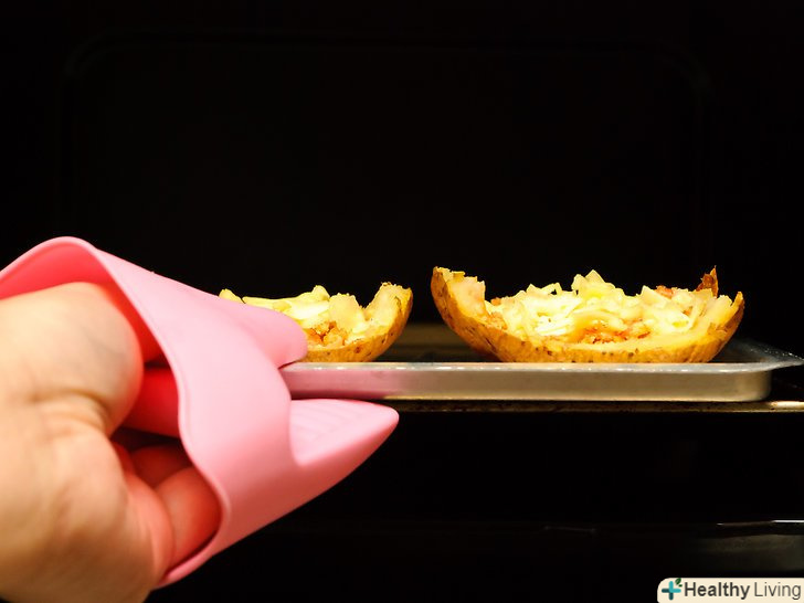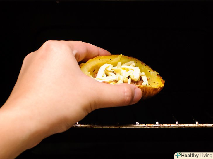 Помістіть шкурки в духовку знову.запікайте їх ще 3-5 хвилин, поки сир не розплавиться.